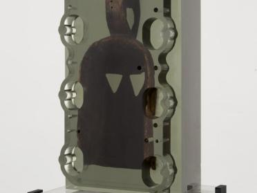 Matthew Angelo Harrison is an African-American artist whose sculpture stands at the intersection of anthropology, science fiction and industrial design. His series Dark Silhouette consists of African artefacts set in transparent resin blocks, into which he carves reliefs and geometric perforations. Taken out of their native context and inserted into a foreign setting, these artefacts are a reminder that Western museums abound with objects removed from their places of origin by colonial violence. The very material of this figure, wood from another continent, suggests an uprooting, whether long ago or recent, and the push and pull between the lands from which we come – which are often unknown, like the exact provenance of this object – and those we end up calling home.