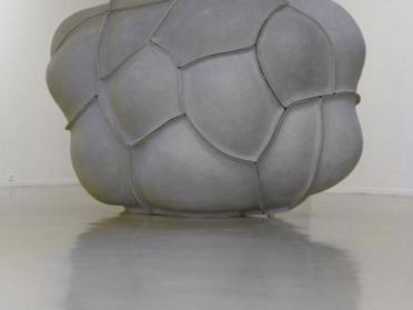 Untitled is a two-metre high sculpture made of rigid, curved fibreglass shells arranged in a staggered pattern. The assembly of these shapes gives the work the biomorphic appearance of a large round shell. This formless body evokes both a protective envelope and a molecular structure. The ribbings which delimit each shell are reminiscent of intercellular membranes. With humour, Mathieu Mercier creates a polysemous object that confuses the viewer and questions our preconceived ideas. In Untitled, the artist seeks to keep a neutral gaze and asks the same of the viewer, who must make their own subjective reading. This approach is part of a permanent questioning of the utilitarian and symbolic functions of objects.