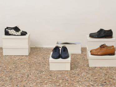 Untitled (2015) is an installation consisting of eight pairs of shoes in the artist’s size that have been cut from different shades and types of leather. Produced and exhibited on the occasion of the exhibition Two Days after Forever at the Cyprus Pavilion of the 56th Venice Biennale, this wardrobe of shoes is endowed with sentimentality. Perched on immaculate pedestals whose placement has been skilfully choreographed by the artist, these shoes have never set foot on the ground. They have no other function than to compose and reinvent the bond between the artist and the women in his family. The artist asked the women for one of their handbags, and then entrusted them to a craftsman who shaped them to his feet. A gift from one generation to the next, passing from hand to foot, from woman to man, this work illustrates the artist’s search for the right way to write history, to enhance its heritage and memorial qualities.