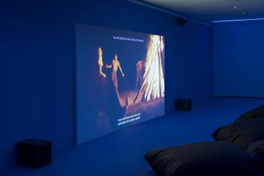 It begins with Korakrit Arunanondchai and Alex Gvojic’s video which takes us to the place where we reconnect with ancestral souls. The video weaves together stories of transformation, of spirits and bodies reentering the universe as it tells us to “participate in the creation of this world by de-creating ourselves”. As we continue, we find ourselves floating between the spirits of Alicia Adamerovich’s paintings which come in both from the outside—from the depths of the soil, and from the inside—from the unconscious, creating horizons and forms that give shape to the final stage of transcendence.