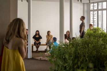 Through music, installations, and the orchestration of collective performances, Lina Lapelytè is interested in power structures, culture, and contemporary ways of being. By overturning the dominant codes of the Western musical tradition, her works invite us to reconsider certain social constructions and thus rethink the place of the individual in the community. Her ballads address issues of ecology, gender, vulnerability, invisibility, and otherness.