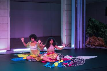 "Apocalypso" invokes the opacity of certain "undergroud" images, masked by a racist, colonial and cis-heteronormed vision of the world. Through the performance of their two racialised and queer bodies, guided by ancestral and animist invocations, the duo remind us that "we are crossroads" and that we need to be together and share our stories.