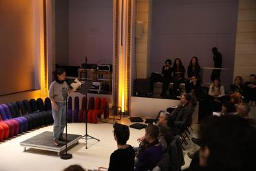 Author of a dozen books published by L'Arche, Actes-Sud Papiers, Filigranes and Éditions Nous, she is active in the field of performance and visual arts. She also publishes in poetry magazines and runs workshops in art schools. She is an associate artist at the Foyer des Jeunes Travailleurs des Hauts de Belleville and the CDN Le Quai d'Angers. Latest published text: Peines Mineures (L'Arche, 2023); latest production: Oasis Love (Festival d'Automne, Paris, 2024); latest exhibition: ‘Comme un Printemps, je serai nombreuse’ (Triangle-Astéride, Marseille, 2025). Her next book will be published by L'Arche in October 2026.