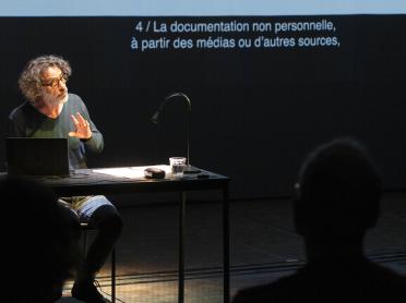 The idea behind Rabih Mroué's "non-academic lectures" is to hijack the principle of the lecture, by imitating its structure, with a view to performance. The idea is not to deride the principle of the lecture, but rather to exploit the power of the exercise as a public address, through a deliberate shift in ambiguity, from presentation to representation, from the real to the imaginary. The illusion is unsettling, the tone is neutral, the expertise seems proven, the supporting documents suggest authenticity: this is the aim of the game, by turns mischievous, moving and intellectually stimulating.