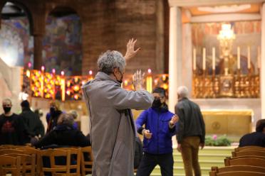 Boris Charmatz and the organist Hampus Lindwall invite the public to meet in the Eglise du Saint-Esprit, a singular building with Byzantine influences and built entirely of reinforced concrete.