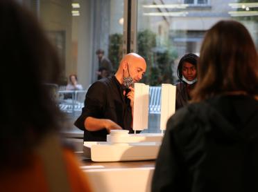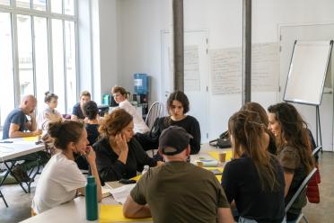 A writing and public reading performance workshop led by Sébastien Thiéry with Noëmie Ksicova and Yves-Noël Genod in the context of the inscription of acts of hospitality on UNESCO's intangible cultural heritage list.