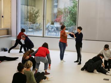 Cette invitation au mouvement est ensuite suivie d'une discussion avec Madeleine Planeix-Crocker, curatrice du cycle des Warm Up Sessions.