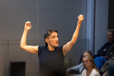 In recent years she has been deepening her work on the movement of attention, the idea of posture as a reservoir and, through her choreographic process, developing a practice of ventriloquism. She researches upon the notion of « Presences » in the Master Degree in Choreography called « Dance Unlimited » in Netherlands (2003-2005). In 2006, Laureate by European Pépinières for Young Artists, she went to Slovenia for an artist residency where she created « RE-PLAY », a trio that was invited at many international festivals. In 2009 she founded her own Company Arts Mouvementés in Lausanne and produced three solos. In 2015 and 2016, she is invited at the Venice Biennale. In 2017 Yasmine Hugonnet is awarded by Swiss Dance Award (dance creation) with Le Récital des postures. In November 2018, she created a new work for three dancers, CHRO NO LO GI CAL at Théâtre de Vidy Lausanne and at l’Atelier de Paris Carolyn Carlson. She created the in situ performance Extensions (2019) in the Parc Bellerive /Théâtre de Vidy with twelve young performers from the Lausanne region, followed by the group piece Seven Winters (2020), presented at the Festival d'Automne in Paris, and the solo La Peau de l'espace (2021). In 2019, she completed a three-month residency in Palermo as part of Palermo calling, a project set up by the Swiss Institute at Palazzo Butera. She is a winner of the Label + romand with her project Les Porte-Voix.