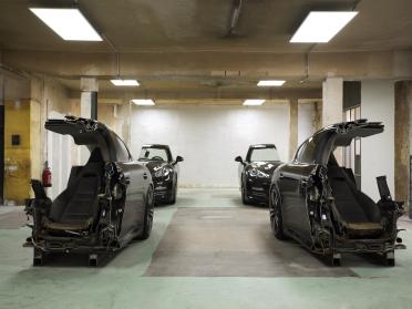 After pursuing research into its origin, design and industrial background, Yngve Holen, whose practice often deals with industrial design and its applications, intervened on this object drastically, but with much care. He cut the car into four parts with a diamond cutter and presented them from the inside-out, thus rendering their “guts” visible to the public. Thought this act, he points directly to the car’s design and capacities, but perhaps also to its flaws. The artist ultimately questions whether notions of speed and security can ever meet.