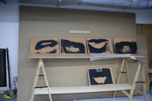 Each of these works corresponds to a syllable, a sound that remains indecipherable. These mouths—sometimes classical, sometimes seductive—are deformed. They bear witness to the complexity and difficulty of formulating inner intentions while symbolizing the primacy of verbal exchange to the detriment of other forms of communication between beings. Martin Margiela has developed a singular technique here: the mouths are tattooed with a laser on silicone plates whose colour is close to that of the skin. They thus appear to be engraved on an epidermis, a territory into which they are inextricably integrated and whose inner activity they attempt to reveal.