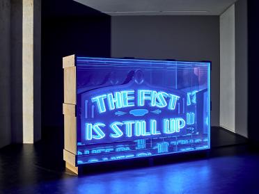 In the late 2000s, Tsang lived in Los Angeles and co-hosted the queer club Wildness. The bar where the club took place, called Silver Platter, was a hub for many transgender women, often refugees or immigrants from Mexico and Central America. In a storefront next to the bar, Tsang co-founded Imprenta, a base for art, activism, and a legal clinic. Here a neon sign declared: ‘The Fist is still up’. The sign’s rallying cry to maintain resistance is rendered as Safe Space, a neon in a packing crate. It acknowledges the problematics of bringing activism and ‘safe space’ discourses into the gallery.