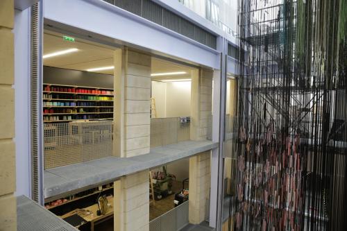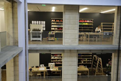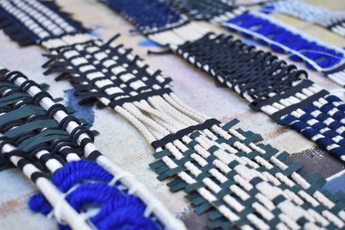 Vues des divers ateliers de travail de l'exposition Hella Jongerius, "Entrelacs, une recherche tissée"