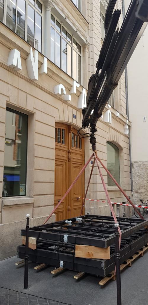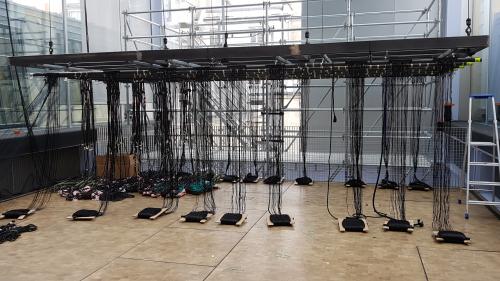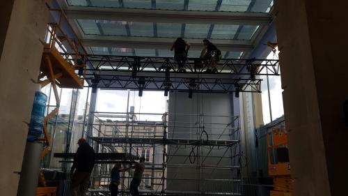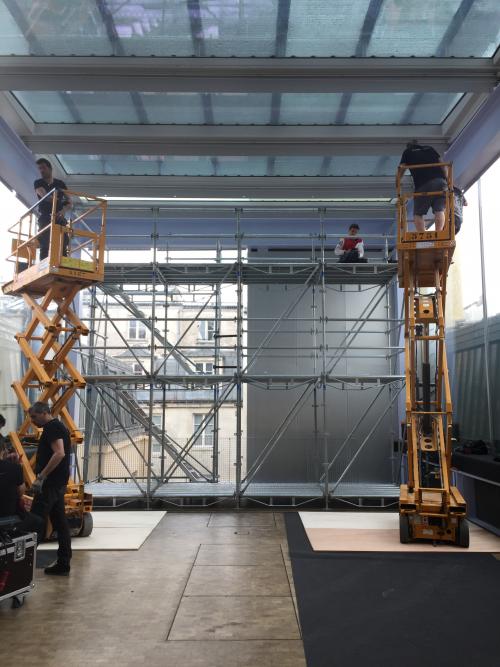 Début du montage de Space Loom au 3e étage de la Fondation