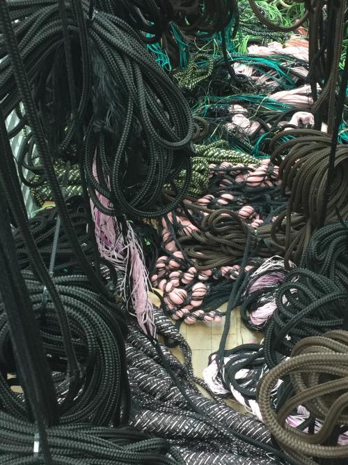 Une forêt dense de fils de chaîne occupe le "Ciel" de la Fondation.