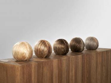 What initially appears to be an anatomical object quickly gives way to an almost hallucinatory vision. The head is in fact a sphere, and vice versa, while the hair covers the spaces from which a face could have emerged. Somewhere between naturalism, hyperrealism, and surrealism, the work appropriates the long tradition of the vanitas. This major genre of seventeenth century Dutch painting focused on the representation of objects symbolizing the emptiness of earthly existence. The work seems to be inspired by the famous phrase memento mori, ‘remember that you are going to die,’ which reminds us to accept our own decline and thus a form of ethics of detachment.