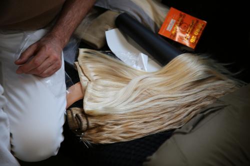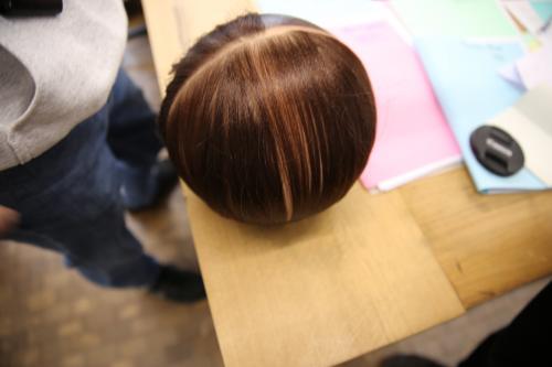 This work is an abstract portrait of a woman and the marks left on her hair by the passage of time through five stages of life.