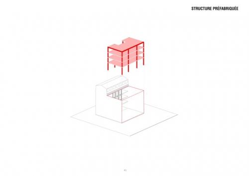 Le bâtiment de 7 niveaux, caractéristique de la période fin XIXe, est organisé en U autour d’une cour. Il peut être traversé librement, donnant accès à la rue Sainte-Croix-de-la-Bretonnerie via un passage couvert. L’intervention architecturale réussit à articuler deux conditions à priori contradictoires : une volonté de flexibilité programmatique maximale et des exigences de préservation patrimoniales et réglementaires très strictes. Le bâtiment est le lauréat du prix spécial du jury de l'Equerre d'argent 2018.