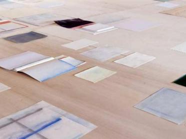 La mise en scène des papiers répond à un équilibre entre les traces antérieures à leur découverte et les ajouts postérieurs de l’artiste. À la fois témoin et indice de passage, 3 semaines suit un ordre particulier tout en convoquant plusieurs médiums et histoires artistiques. Le carton et le papier marqués par l’encre, la gomme et la craie évoquent les matériaux traditionnels. La plasticienne y ajoute des innovations en utilisant notamment de la poussière et du ciment. Elle cherche à susciter une évocation sensorielle en ajoutant sa propre empreinte à l’histoire de ces papiers. Leurs différentes dispositions sur le sol suggèrent une synesthésie avec les matières. Le processus si familier du dessin est remis en question, l’artiste expliquant que « dessiner se fait ici en une série de gestes » – récupérer, trier, classer, ranger dans un ordonnancement administratif. La récupération de ces papiers jetés et abandonnés traduit enfin l’omniprésence de l’homme dans une nature aménagée, voire exploitée.