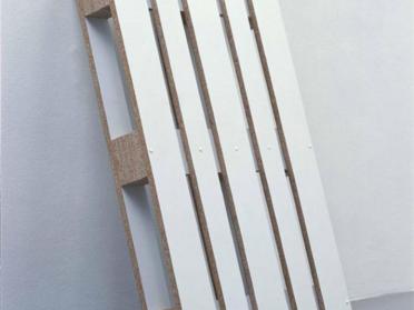 Cette palette en mélamine est la reproduction d’un outil populaire de la circulation de marchandises. Les milliards d’exemplaires existants sont ici reproduits sous la forme d’une seule unité présentée contre un mur, comme abandonnée après une livraison. En tant qu’emblème du transitoire et du transport faisant référence à la société mondialisée, Euro-palette Standard emprunte à deux mondes qui semblent ne pas communiquer bien qu’ils aient plusieurs caractéristiques en commun : le musée et le supermarché. Ce sont deux univers qui classent, nomment, catégorisent et font l’inventaire des objets. Ils partagent également des objectifs, par exemple faciliter les flux, rendre accessible, fidéliser un public. Mathieu Mercier interprète cette correspondance comme un défi que la marchandise lance à l’art. La palette perd ainsi sa valeur commerciale et d’usage, mais acquiert une nouvelle valeur d’échange. Il ne s’agit donc pas d’un ready-made qui serait une réponse de l’art à la marchandise, ni d’appropriation par l’art de ce qui lui est étranger. C’est au contraire le témoin d’un rapport serein aux objets qui produit un enrichissement mutuel, emblématique de la démarche de Mathieu Mercier.