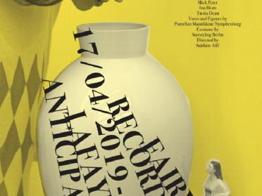 L’affiche présente la performance inaugurale de Saâdane Afif à Lafayette Anticipations en 2019, qui reprenait une réflexion menée en 2011 au Schinkel Pavillon à Berlin. Placardée au mur pendant l’événement, elle en constitue le générique. Après avoir commandé des textes à Tom Morton, Lili Reynaud-Dewar, Mick Peter, Ina Blom et Tacita Dean, Saâdane Afif a composé une performance avec l’aide de la soprano Katharina Schrade et du compositeur Ari Benjamin Meyers. Les paroles animées sont interprétées, déclamées et finalement chantées dans un vase qui est ensuite scellé pour créer un « enregistrement magique ». Le couvercle de ces vases commandés à la manufacture de porcelaine de Nymphenburg est surmonté d’une figurine représentant la chanteuse lyrique, tandis que leur pourtour mentionne le numéro, le titre et la date de l’enregistrement. En cherchant à figer la parole à l’imitation de François Rabelais, Saâdane Afif s’intéresse ici à l’enregistrement du son avant Thomas Edison.