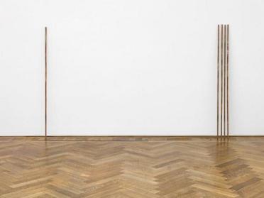 Cinq barres métalliques de 180 centimètres de long sont posées contre un mur blanc. L’aspect minimaliste et épuré de cette œuvre tranche avec son titre. Les « corps entassés » évoquent ici les massacres perpétrés par les colons belges au XIXe siècle pour prendre le contrôle des mines de cuivre du Katanga (République démocratique du Congo). Ces mêmes mines ont été au cœur de la guerre civile de 1960 dans la même région. Les barres métalliques ont été obtenues en transformant de petites croix en cuivre qui servaient autrefois de monnaie au Katanga. La fonte de ces croisettes, geste empreint d’une forte puissance symbolique, fait écho à la violence de la colonisation européenne. Mathieu Kleyebe Abonnenc cherche à « désabriter le regard » de son public. Il l’amène à prendre la pleine mesure de la réalité de la colonisation et surtout de ses conséquences. L’artiste rappelle ici que le cuivre, en tant que matériau, ne peut être perçu de façon neutre tant son histoire est marquée par une violence toujours contenue dans les tiges de métal exposées.