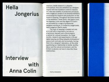 Pendant tout l’été 2019, le bâtiment de la Fondation s'est transformé en une grande fabrique de tissu ouverte au public. Les qualités performatives du bâtiment lui-même ont été mises à contribution, les plateaux mobiles ont été utilisé comme un gigantesque métier à tisser en mutation constante. Une équipe de tisserands et jeunes designers, travaillera de concert avec des personnes volontaires qui ont souhaité participer à ce grand projet. Les complexités du tissage, les possibilités de développement technologiques, mais aussi les enjeux sociaux de la production de textile aujourd’hui ont été abordé pendant toute la durée de l’exposition lors de rencontres publiques conçues avec le JongeriusLab.