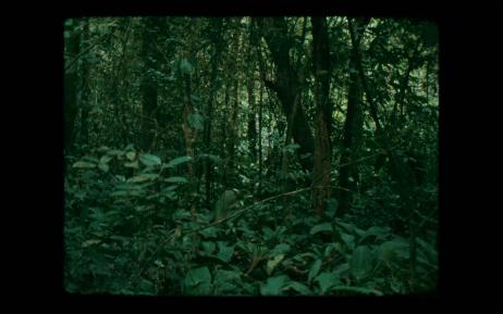 PhantomLorsque notre tour vient, on pose l’oculus sur la tête, et s’ouvre alors à nous un paysage dentelé de forêt vierge, sans limite, incommensurable. Chaque brindille, chaque feuille, chaque arbuste est rendu en pointillés stéréoscopiques blancs sur noir, une cartographie spatialisée de l’infinie diversité d’un univers où la nature seule dicte ses lois et a installé des équilibres séculaires. Le dispositif technique suit nos pas et lorsqu’on lève les yeux vers le haut, on est au cœur d’un arbre dont on perçoit de l’intérieur toutes les ramifications. Notre corps de regardeur traverse les lieux et s’efface, comme un pur esprit, une conscience à la fois capable de tout percevoir des structures magnifiquement complexes de l’écosystème sans pour autant nous accorder le pouvoir de le modifier. L’artiste brésilien d’origine catalane Daniel Steegmann Mangrané a effectué un scan 3D de haute précision sur près de 1000m2 au cœur de la forêt vierge du sud ouest du Brésil, le Mata Atlântica. Son installation Phantom (Kingdom of all animals and all beasts in my name), 2015, est, pour qui se laisse prendre au vertige de la contemplation, avant tout l’expérience d’une conscience de « soi », un royaume en effet où se confondrait tout le vivant environnant, comme un gigantesque réseau d’énergies invisibles.MultinaturalismeUne carrière de biologiste se dessinait devant le jeune Daniel Steegmann Mangrané.