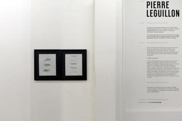 Cette publication, présentée dans le cadre du programme de préfiguration et exposée du 11 au 14 décembre 2013 fut augmentée d’un journal filmé dans lequel l’artiste déchiffrait à voix haute les carnets, lettres, affiches et invitations réalisés par le peintre. Ainsi l’impression des dessins des Galeries Lafayette ont rappelé d’emblée combien le magasin a fasciné les créateurs tout au long du siècle, augurant encore de possibles collaborations.“DUBUFFET TYPOGRAPHE”Pierre Leguillon réactive depuis quinze ans des œuvres majeures du XXe siècle qu’il juge paralysées dans l’histoire. Artiste, curateur, professeur, photographe et critique, il est lui-même un et plusieurs auteurs. Ce décuplement de personnalité se résout dans le livre, la forme la plus à même de prendre en charge la genèse, le développement et l’émancipation d’une création. « Une proposition qui émane de moi (...) veut, que tout, au monde, existe pour aboutir à un livre » écrivait Mallarmé dans les Divagations.