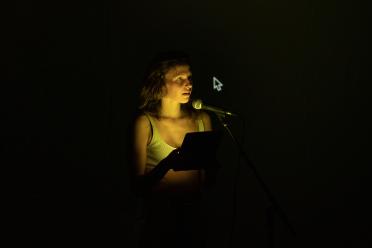 Née à Chicago, elle a étudié la danse à P.A.R.T.S. (Bruxelles). Elle œuvre à l’intersection de la poésie et de la performance, souvent en duo avec l’interface utilisateur OSX. Son travail est nourri d’un intérêt constant pour la littérature médiévale, la fanfiction, l’étude des médias et la pratique de la lecture collective. Elle travaille également avec l’artiste Henry Andersen, sous le nom de « Slow Reading Club ».