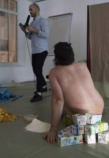 Resentment, une performance avec son, nourriture et animations de Matthew de Kersaint Giraudeau, avec Daniel Oliver.