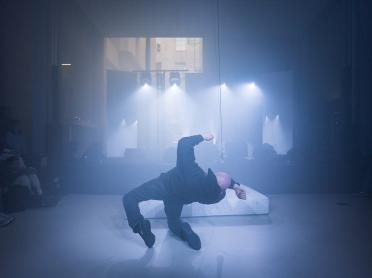 La performance Hotel reflète la pratique chorégraphique de Blackhaine, inspirée par le butoh et le 'spoken word'.