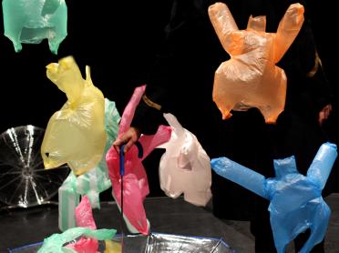 L'oeuvre L'après-midi d'un foehn Version 1 s'appuie sur l'air et les mouvements pour élaborer une chorégraphie plastique autour de nos relations au vivant et à l'artifice.