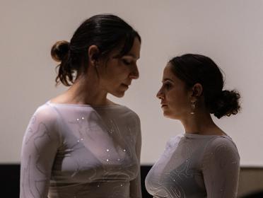 Au programme : la performance Promises, la projection de la série vidéo Promises b2b, ainsi qu'une adaptation cinématographique de leur nouvelle pièce Sham3dan. Dans Promises, la chorégraphie exprime une promesse en suspens. Les gestes lents et intenses dessinent une recherche délicate d'harmonie, de tendresse, de disparition et de renouveau, où chaque effort de synchronisation semble destiné à échouer avant de renaître. Une exploration émouvante de notre relation au temps, entre attente, répétition et désir d'ancrage. Avec Promises b2b, le duo approfondit cette exploration à travers une série de vidéos mettant en scène des danses en duo. L'espace entre les corps devient un terrain de jeu et de tension - une symétrie en mouvement, entre connexion et dissonance.