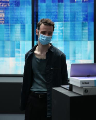 En regard de cette œuvre, Safe Space, on trouve cette gigantesque sculpture, Sustained Glass. Alors il faut imaginer que la Fondation a été complètement métamorphosée pour cette exposition et comme un espèce de grand automate qu’elle est, elle s’est faite, elle s’est parée d’une nouvelle scénographie pour accueillir les œuvres de l’artiste. Et là quand on fait face à cette œuvre Sustained Glass on est vraiment plongé dans une architecture très proche de celle du sacré, très verticale, c’est-à-dire que l’on a vraiment repris des codes que l’on connaît si bien de la religion. Sauf que sur cette oeuvre qui a été faite elle aussi en vitrail grâce au savoir-faire d’artisans incroyable qui viennent de Bavière, qui sont parmi les derniers à connaître ce genre de pratiques, on découvre de mots, des mots qui sont raturés, des mots sur lesquels d’autres mots sont venus se poser. C’est-à-dire qu’au contraire d’un discours religieux qui souvent impose une vision unique du monde, ici Wu Tsang célèbre la pluralité des langages et leur rencontre. C’est un espèce de palimpseste, donc plusieurs couches de langages et d’idées, de visions qui se rencontrent, sur les paroles originelles de Fred Moten. Et cette conversation qui a lieu sur ce vitrail, c’est vraiment un manifeste aussi pour Wu Tsang d’un appel à la collaboration, à la rencontre de la pluralité des visions, la manière avec laquelle le monde que l’on dessine c’est finalement la somme des visions et des perspectives que chacune et chacun d’entre nous peut y apporter. Néanmoins, quand on s’approche de cette œuvre, qu’on découvre que ce vitrail et ces mots sont faits de reliefs, et c’est en fait de l’acide qui est venu abimer ou sculpter la finesse de ce verre. Et c’est pour Wu Tsang une métaphore du pouvoir corrosif du langage. C'est-à-dire que les mots que l’on peut employer pour décrire le monde et notre condition à travers lui sont à l’image de ce vitrail. Ce sont des mots qui peuvent agir sur le monde. Les mots et le langage que l’on peut employer ont une force et une vraie puissance, qui sont indéniables, et qu’il nous appartient de reconnaître et de valoriser. Et aussi, c’est très important, cette œuvre permet à la lumière, et vit grâce à la lumière. Et c’est une autre forme de lumière que celle qui faisait vivre Safe Space, mais c’est encore une fois une éloge de la partie lumineuse de notre monde, de la possibilité toujours d’avancer guidé.e par cette force.