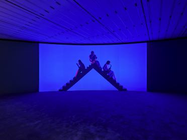 Mais avant de plonger dans cette vidéo, la première œuvre que l’on découvre c’est un escalier. Un escalier qui à première vue paraît être une forme géométrique parfaite, c'est-à-dire qu’il dessine un triangle, dont on peut identifier la base ainsi que les angles. Et il s’avère que lorsque l’on bouge et que l’on se meut autour de cette œuvre, il apparaît que, ce qu’on pensait être une forme parfaite est en fait éclatée. Ce que l’on pensait être proche est en fait loin, ce que pensait être loin est en fait proche et l’ensemble de cet oeuvre nous invite à penser que tout est une question de perception, de position dans l’espace, de position dans le monde, et qu’en fait, la manière avec laquelle nous percevons ce fameux monde que l’on habite dépend bien souvent de la position que l’on peut occuper à travers lui. Et l’ensemble du projet de Wu Tsang, c’est certainement un appel à repenser nos positions, à réfléchir à comment certaines et certains d’entre nous se retrouvent assigner une certaine place dans la société alors que d’autres peuvent jouir d’autres positions. C’est une invitation permanente à repenser ce que l’on pensait définitif, permanent. Une invitation à célébrer la libération de l’être et la libération de l’être trop souvent étreint par des règles qui le dépassent mais aussi par des héritages, des héritages historiques