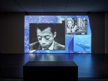 Synchronisée à la bande-son de The show is over, projeté un étage plus bas, l’œuvre The more we read all that beauty the more unreadable we are (Plus on lit toute cette beauté, le plus illisible on est) est comme un complément de ce film.