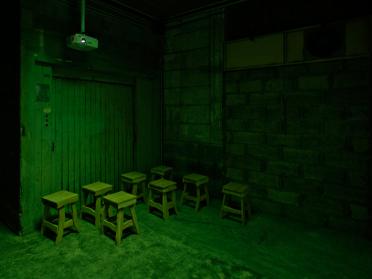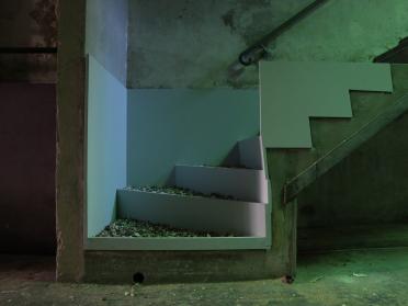 Untitled (Bottle Window Corridor), 2013-2014 Untitled (The Black Step), 2013-2014 Les œuvres de Gabriel Sierra éprouvent l’idée que les formes et matières constituent un langage architectural et peuvent à ce titre être considérées comme des systèmes de transmission de valeurs. L’artiste intervient directement dans le vocabulaire spatial de Lafayette Anticipations, en remplaçant certaines fenêtres et lucarnes par des plaques de verre fondues à partir de bouteilles de Perrier, qui altèrent non seulement la lumière mais encore l’atmosphère des pièces dans lesquelles elles se trouvent. À leur tour les marches d’un escalier qui relie deux niveaux sont modifiées. Leur surface est changée pour que leur franchissement constitue une nouvelle expérience.